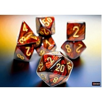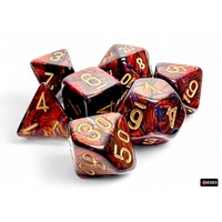 Contains 7 Scarab Blue Blood™ Dice with gold numbers in the following Shapes: