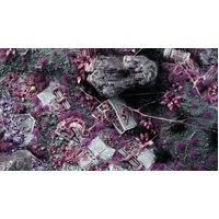 The Purple Swarm Basing Box will give shivers to your miniature armies. In some dark corner of the galaxy, a derelict spacecraft or station has become a spectacle of wonder – surely by the hand of the purple colored native specimens, endemic to that planet. By direct observation, all seem to live in perfect symbiosis, thriving for one clear goal – to swarm and consume everything! Amidst the panels and metal floors, strange creatures build their nests, spreading tendrils and eggs, laying the ground for the curious, glowing flowers that seem to shine without cease.