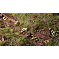 Very small and low tufts with a strong green tone. Best used to simulate tiny patches of vibrant grass in temperate forests, mountainous regions, and along cliffs. In combination with other colours and sizes, they provide realistic detail. At very small scales, they are perfect to recreate rich vibrant meadows and grasslands.