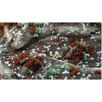 Very small and low tufts with a pale teal color. Best used to recreate tiny lichens growing on rocks and other surfaces, where almost no atmospheric pollution exists. They can also be used for cold environments, or even to portray magical bioluminescent species in caves and forests. In combination with other colours and sizes, they provide realistic detail to your scenes.