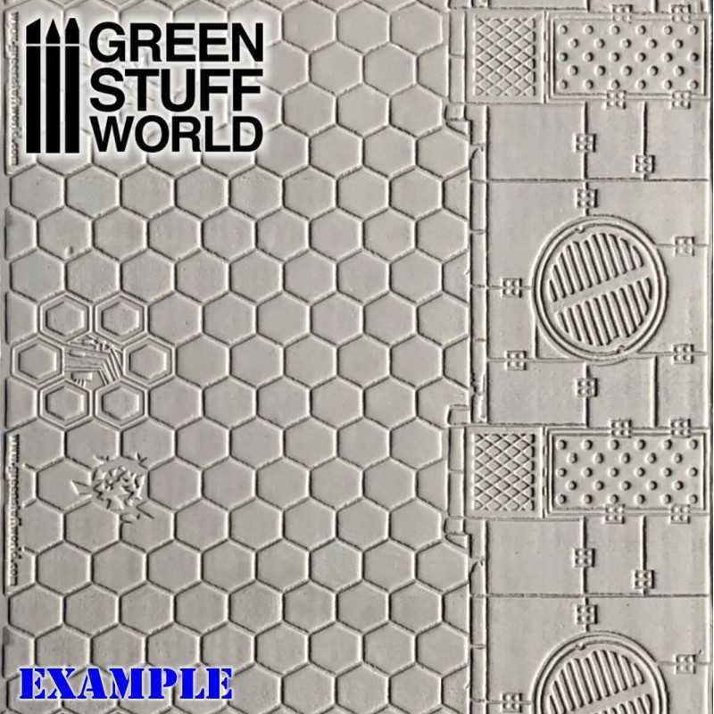 For Green Stuff putty, which is particularly sticky, it is required to slightly wet either the putty or the Rolling Pin with some water before texturing. You may also reduce the stickiness by applying talcum powder, or using Sculptor Vaseline (LINK).