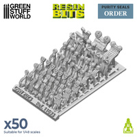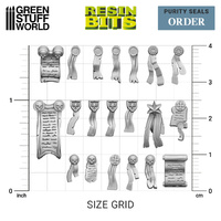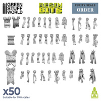 Purity seals are a popular decorative element in wargame modeling, in fact, it is compatible with Warhammer 40K®. It has been carefully designed to add a sense of authenticity and character to miniatures. These seals are small scrolls or ribbons that attach to the armor or weapons of a miniature and are often adorned with various symbols and inscriptions.